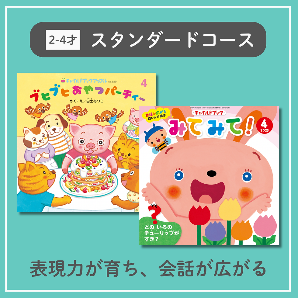 『どうぞのイス』をはじめ、数々の名作を生み出してきた老舗チャイルド本社の月刊絵本を採用。著名な絵本作家さんが心を込めて制作した質のよい絵本をお届けします。